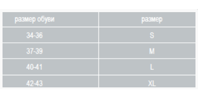 | Размер обуви | 34-37 | 38-39 | 40-41 | 42-43 |