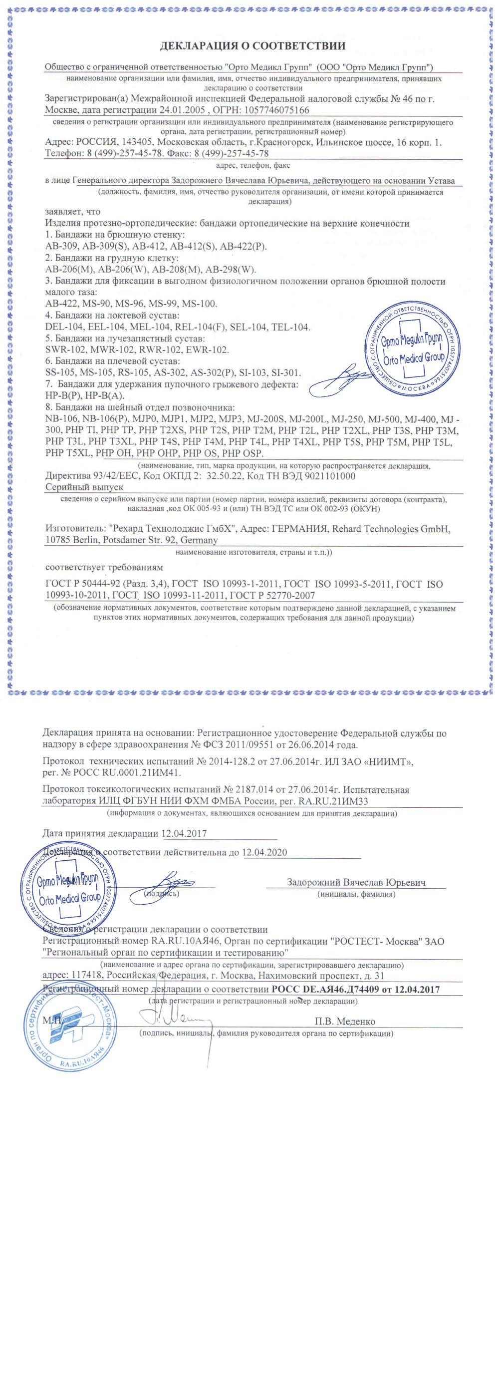Изделия протезно-ортопедические: бандажи ортопедические на верхние конечности: бандажи на лучезапястный сустав арт. RWR-102 предназначен для фиксации большого пальца в положении отведения.