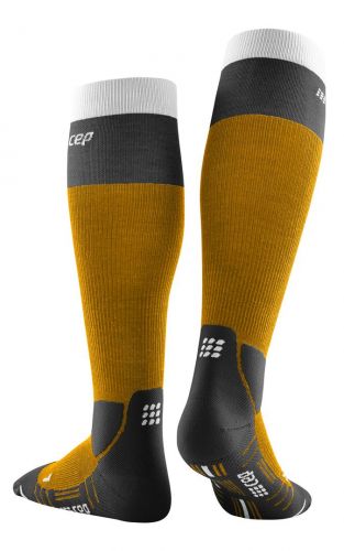 Компрессионные мужские гольфы CEP с шерстью мериноса, сохраняющие оптимальный температурный баланс кожи и поддерживающие здоровье вен при отдыхе на природе.